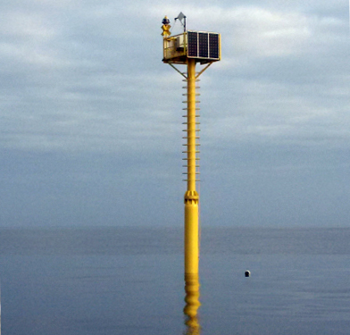 In normal buoys, the focal plane is much lower as the buoy usually has a very low metacentre. In very bad weather conditions, a light on an elastic beacon will always be visible between two waves, while a buoy stays invisible in a similar situation.