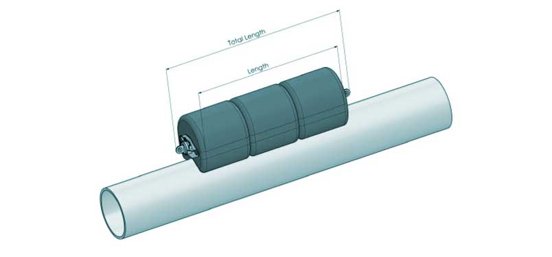 Floats are fastened to the pipe by means of straps (steel or nylon).