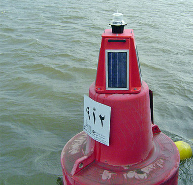 FLOATEX buoy 1600 RIVER is normally equipped with latest compact solar powered marine lanterns.