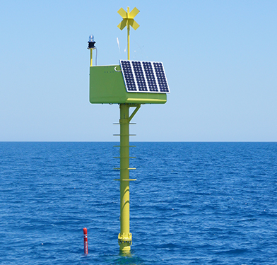 In very bad weather conditions, a light on an elastic beacon will always be visible between two waves, while a buoy stays invisible in a similar situation.